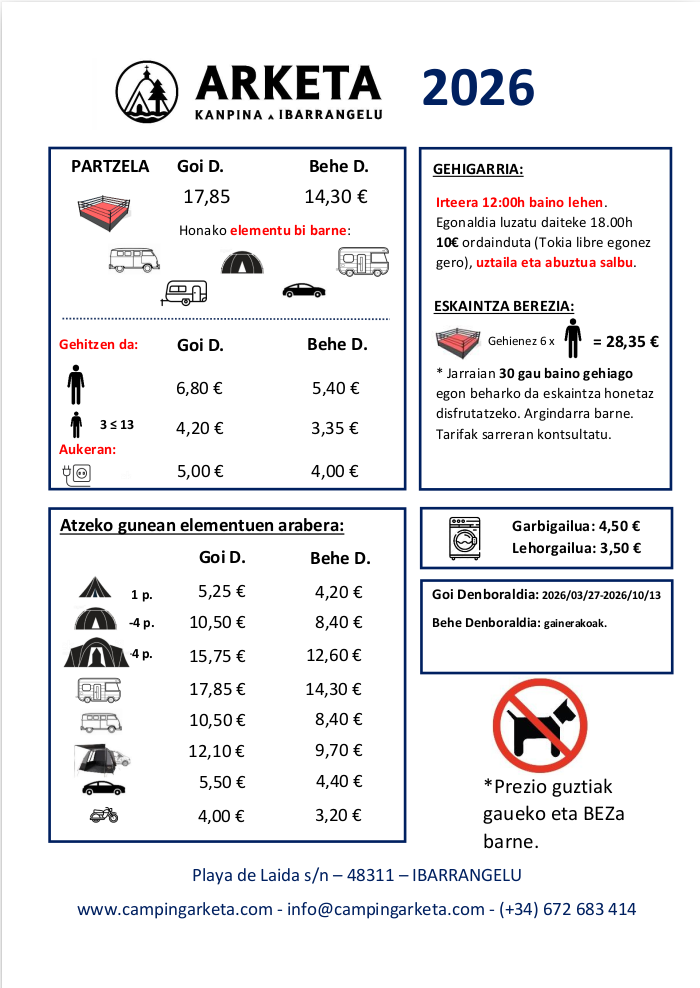 Kanpinetik irteera 12:00ak baino lehen egin beharko da. Zure egonaldia 18:00ak arte luza daiteke 10 € gehiago ordaintzen baldin badituzu (beti ere sartzeko beste inor ez balego itxaroten), uztailean eta abuztuan izan ezik.